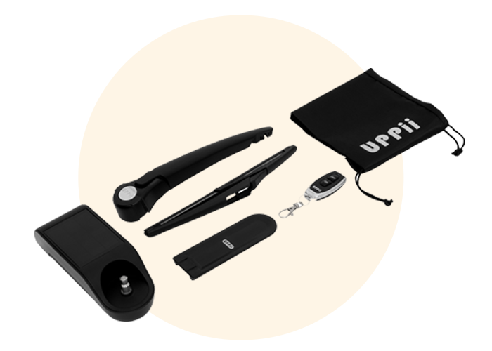 UPPII scooter-ruitenwisser set De complete UPPII (demontabele) ruitenwisser waarmee u uw scooter in weer en wind kunt gebruiken. Veilig en met goed zicht. De complete set wordt geleverd in een bewaardoos en bevat de volgende...